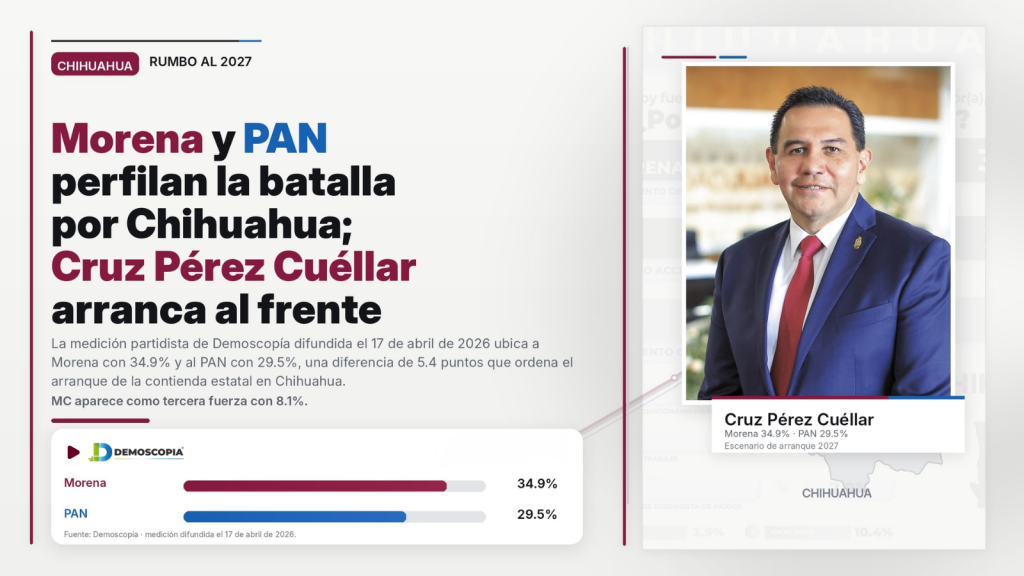 Los resultados dibujan un escenario competitivo en Chihuahua, pero con ventaja inicial para Morena tanto en fuerza partidista como en posicionamiento de aspirantes. En ese contexto, Cruz Pérez Cuéllar aparece como el actor mejor colocado en la arrancada rumbo a 2027, mientras que Marco Bonilla se perfila como el principal contendiente desde la oposición.